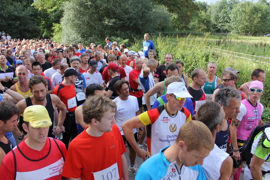 Den anspruchsvollen Landschaftslauf über 28,1 Km über die Sophienhöhe habe ich als Vorbereitung für einen Herbstmarathon in meinen Eventkalender aufgenommen. Leider hat das Team Geldern Fitness etwas geschwächelt und so vertrat ich es alleine bei diesem tollen Lauf, der mit über 350 Höhenmeter aufwartete. Er fand zum 10 Mal statt und es wagten sich 351 mutige Frauen und Männer an den Start. Als ich im Startbereich stand, kam ich aus dem Staunen nicht mehr heraus. Es sah so aus, als würden hier nur absolute Laufprofis starten. Ich sah T-Shirts vom Hermmanslauf, vom K 78, vom Gletschermarathon, vom Chimgauer 100, vom Lauf durch die grüne Hölle (Nürnburgring), vom Monschau Marthon ... worauf hatte ich mich da schon wieder eingelassen? Nun gut, jetzt war ich hier und wie immer in solchen Situationen, dachte ich mir: Heute ist ein guter Tag zum sterben... und stürzte mich ins Vergnügen. Es macht mir Freude mit Profis am Start zu stehen.